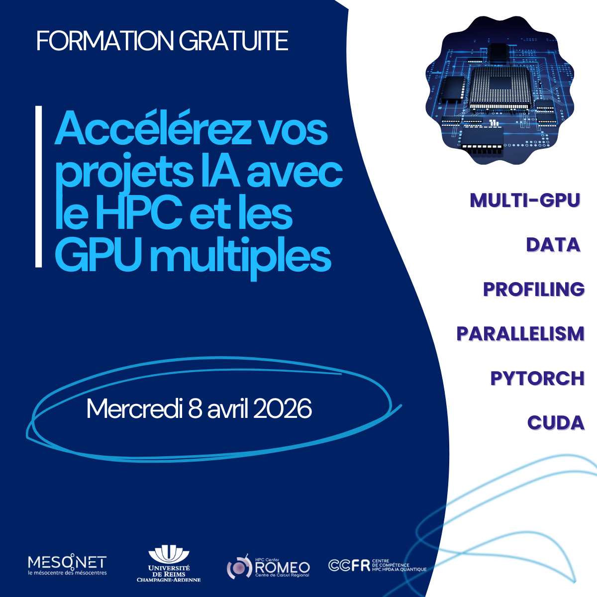 Cette formation est proposée gratuitement dans le cadre du projet EuroCC2 (CC-FR), EDIH GE, et de MesoNet.